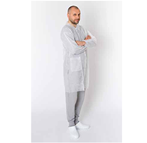 Zaštitni mantil od polipropilena (30g/m2) beli, jako izdržljiv, ne sterilan. Ima dugačke rukave i kragnu, elastične manžetne,