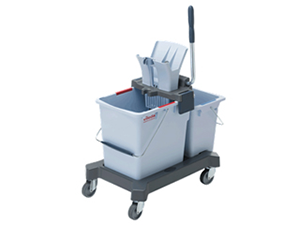 Modularna kolica za čišćenje. Dijelovi: 1 x plastično postolje, 4 x točkići, 1 x pomoćni točkić, 1 x plastični ram za kesu za smeće 120L, 1 x držač za kante, 2 x kante od 6L, 1 x metalni produžetak, 1 x rukohvat. |